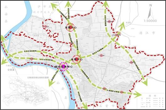 積極對接荊州市“一核五極六軸”城鎮格局,深化落實江陵向北拓展,與荊州主城區融合發展的戰略部署要求,統籌國土空間、產業布局、人口規模和環境容量,科學合理劃分生活空間、生產空間、生態空間,構建分工明確、功能互補的新型空間功能布局,明確鄉鎮等級規模結構,強化交通支出體系,優化城鎮空間格局。