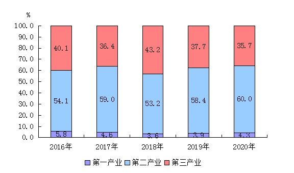 016年-2020年陽城縣三次產(chǎn)業(yè)結(jié)構(gòu)情況