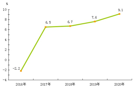 2016年-2020年陽城縣規(guī)模以上工業(yè)增加值增長速度