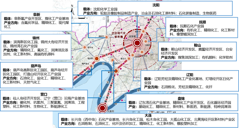 大連長興島石化產業基地 盤錦遼東灣石化產業基地 撫順精細化工產業化基地 遼陽芳烴及化纖原料基地 |