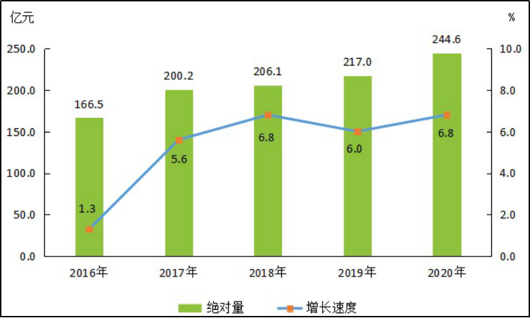 圖1 2016年-2020年陽城縣生產總值及增長速度