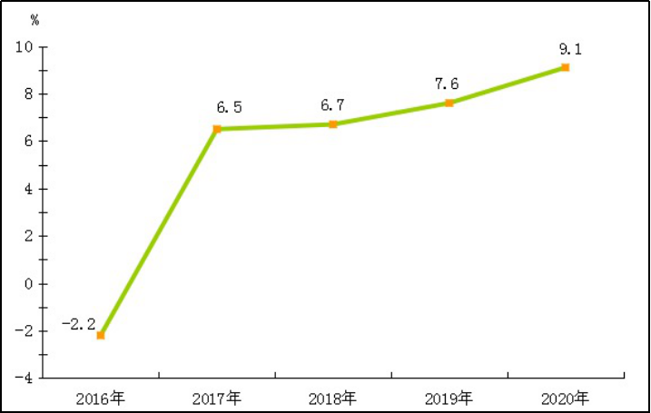 圖3 2016年-2020年陽城縣規模以上工業增加值增長速度