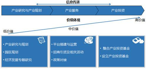 依托核心產(chǎn)業(yè)促進能力,以產(chǎn)業(yè)研究與產(chǎn)業(yè)規(guī)劃為切入點,最終通過提出操作性方案及深度介入,與客戶形成以下良性互動