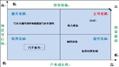 主導發展SMT和電力裝備產業,提升發展制藥設備、醫藥包裝機械、汽車關鍵零部件和新能源汽車零部件產業,培育發展汽車服務業。