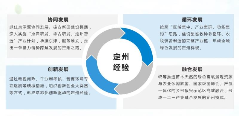定州國家農業科技園以建設具有全國示范意義的國家農業科技園區為目標,把科技園區建設作為實施鄉村振興、脫貧攻堅戰略的有力抓手,堅持以綠色循環農業為主題,以苗木、畜牧和農牧裝備為主導產業,著力建設綠色循環農業試驗田、打造產業融合標兵、產城融合樣板、國際技術合作典范。